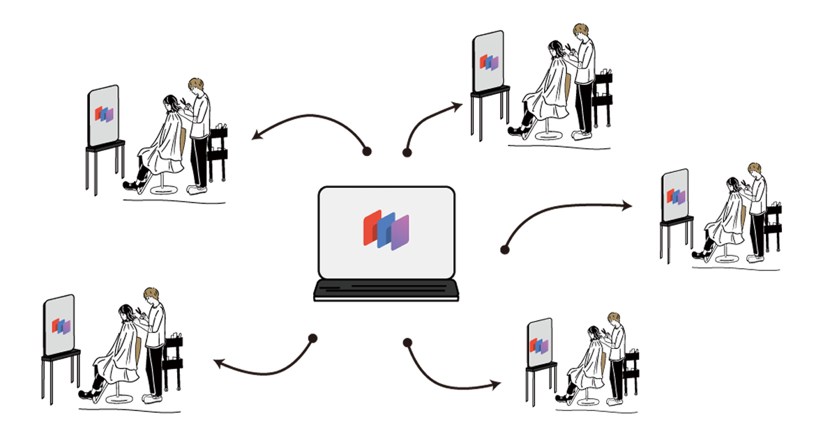 サロン様側で、店舗ごとに配信する動画・画像を変更することができるので、タイムリーなお知らせを配信することができます。店舗からのお知らせはもちろん、広告の配信をすることができます。※広告配信については近日リリース予定