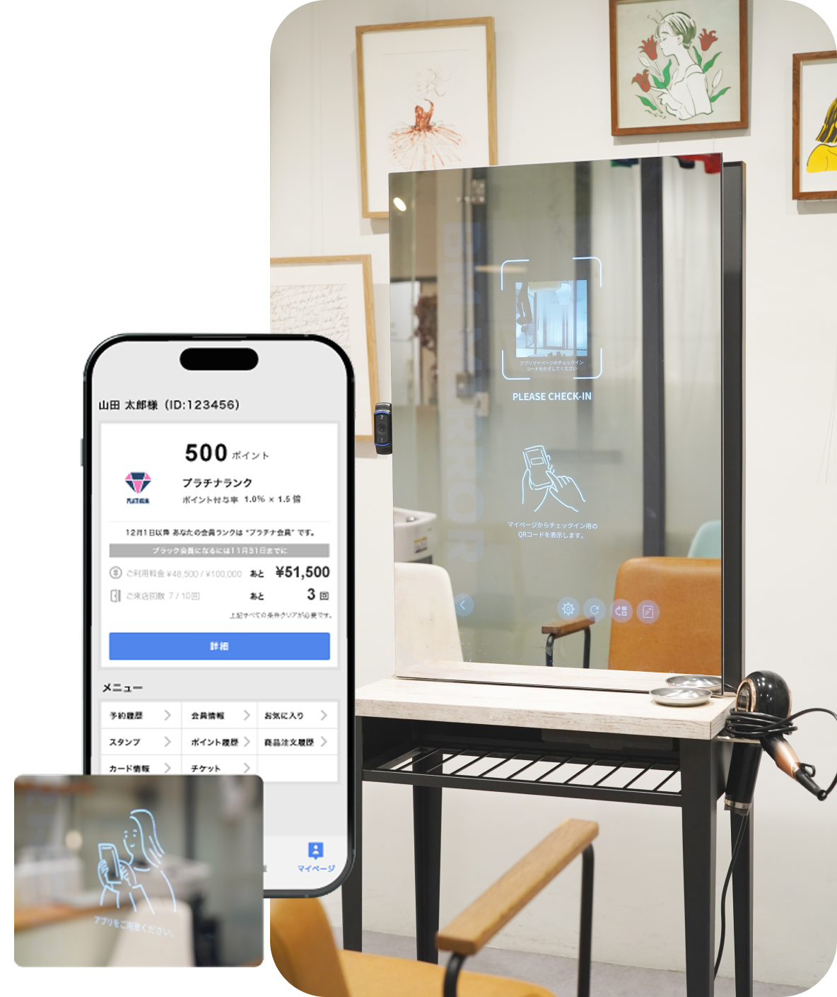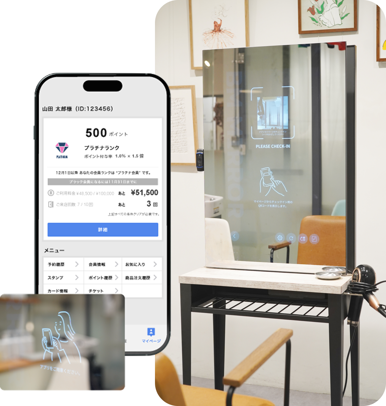 予約情報の表示だけではなく、チェックインしたお客様の性別・年齢などに応じた動画を配信可能。効果的に広告ターゲットにリーチすることができます。
